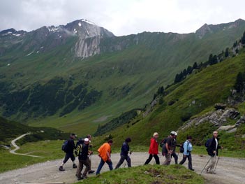 Von Rein aus ein gemütlicher Aufstieg an der Fahrstraße durch das Knuttental bis hoch an den Klammlsee. Noch war das Wetter zweifelhaft. |