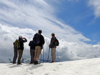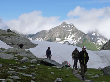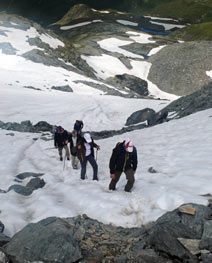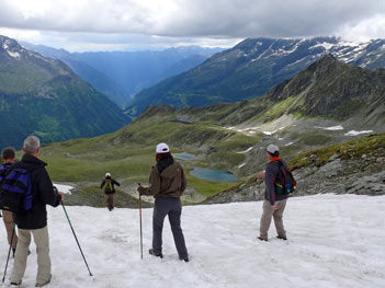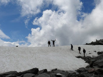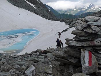 Einige Schneefelder mussten erklommen werden. Dann sah man einen schönen Eissee. |