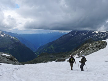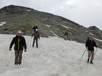 Der Abstieg war eine "Rutsch-Party" durch Altschneefelder. |