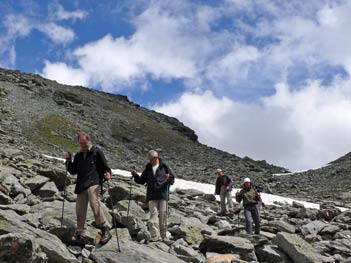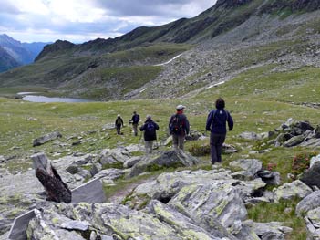 Nach kurzem Graupelschauer schien sich endlich die Sonne durchzusetzen. Zeit für eine weitere Rast an den Napfen Lacken. Dann der weitere Aufstieg in die nun sichtbar werdende Bärenluegscharte. |