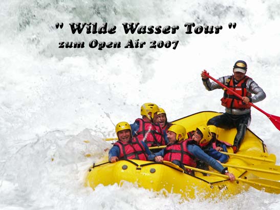 2007 feierte unser Fanclub sein einjähriges Bestehen. Dazu planten wir eine Gaudi der besonderen Art für all unsere Freunde und Bergfeuerfans. Am Samstag vor dem Konzert gab es eine Raftingtour auf der Ahr von Luttach bis Mühlen. Ein Spaß für jung und alt! Nur etwas nass und kalt. Mit zwei Bootsbesatzungen ging es in die Fluten. Danke nochmals an alle Teilnehmer, die sich dazu "verführen" ließen! |