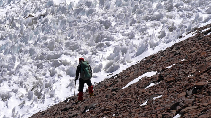 ganz langsam zurück um einen der Gipfel in ca. 4.950 Meter über