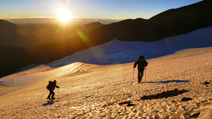 Meereshöhe zu erreichen. Danach geht es zurück zum Lager. Obwohl der