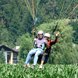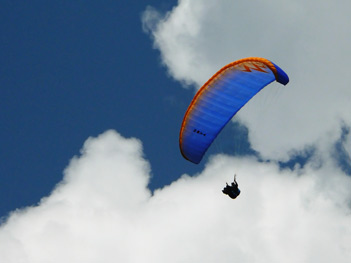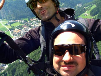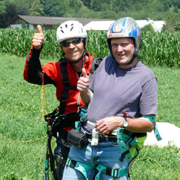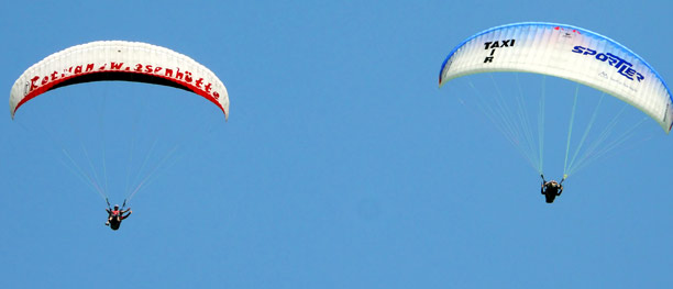| So frei wie ein Adler im Wind fühlten wir uns schon am Freitag. Der Besuch auf dem Ederhof fiel daher nur kurz aus. Denn es galt das letzte flugtaugliche Wetter am Bergfeuer-Wochenende zu nutzen. Sechs Teilnehmer fanden den Mut, sich mit in die Lüfte zu schwingen. In drei Staffeln mit zwei Piloten wurde es ein unvergessliches Erlebnis für uns. |