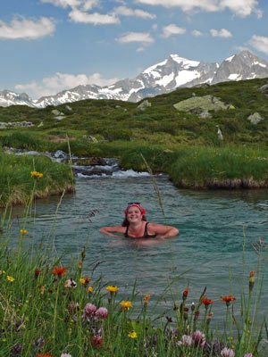 Und bei dieser Sommerhitze lässt sich sogar ein kühles Bad im Bergbach aushalten...