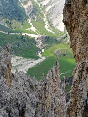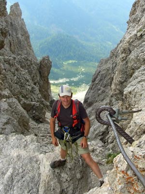 Für den Freitag plante Hartmut, Stefani und Renè die Klettersteigbegehung am Sas Rigais in der Geislergruppe. Ein lohnendes Ziel mit beeindruckenden Talblicken ins Villnösstal. |