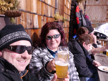Bergfeuer. Das super Winterwetter ließ auch noch einige Runden auf den Loipen von Kasern und Rein zu, bevor wir wieder zurück ins ebenfalls winterliche Erzgebirge fuhren. |