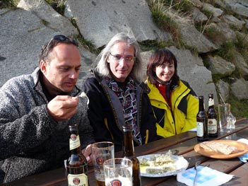 Bei Buttermilch, Graukäse, Bier und einigen Schnaps-Spezialitäten, verbrachten wir noch eine sonnige Stunde, bevor wir ganz ins Tal abstiegen. |