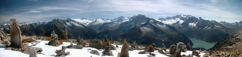 "Gefrorenen Wandspitze" und dem "Olperer". Nach Süden hin liegt einem der ganze