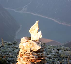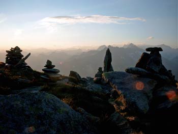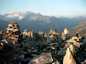 Hütte (ehemals jüdische Sektion) viele Steinmänner aufgestellt. Ihre Bedeutung